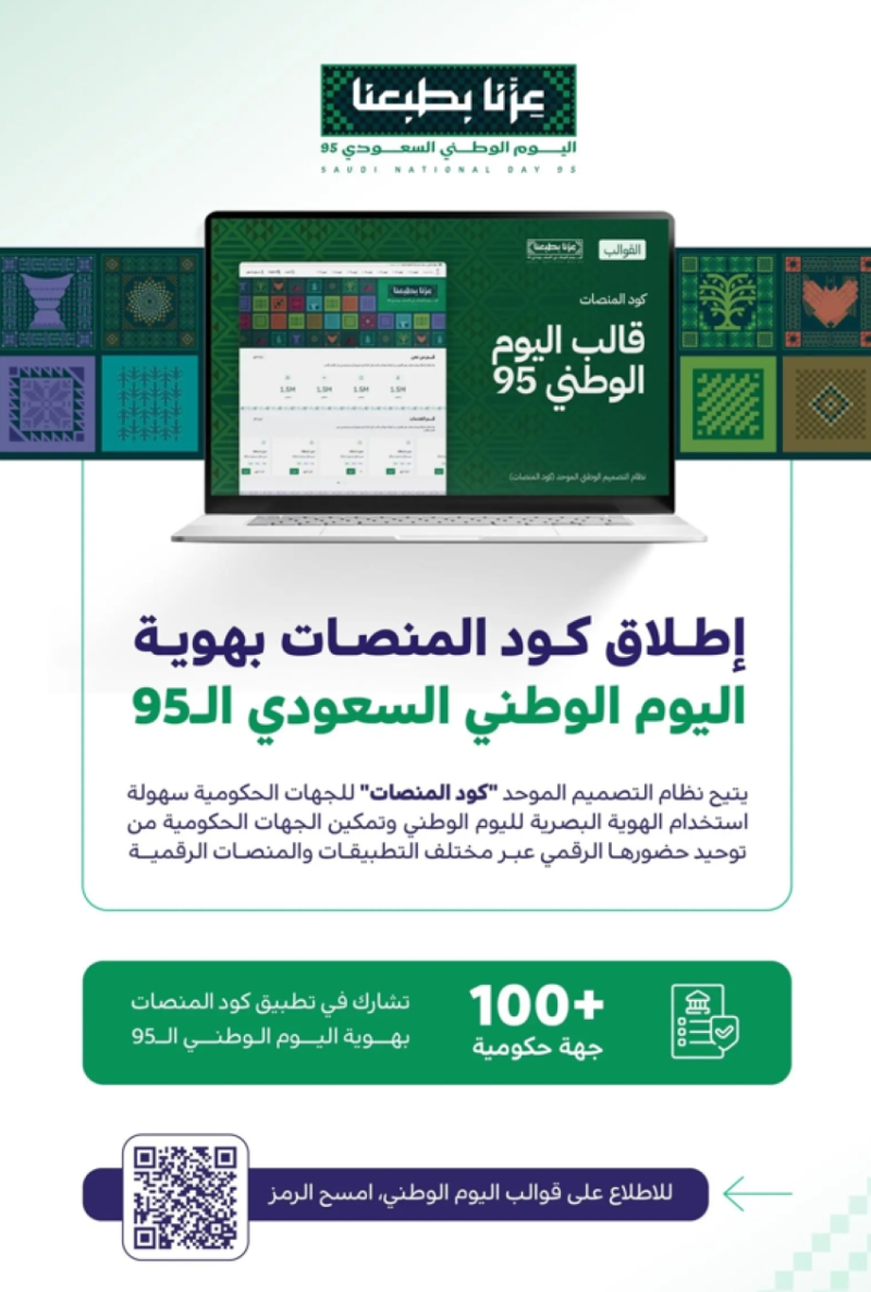 أكثر من 100 جهة حكومية شاركت في تطبيق “كود المنصات” بهوية اليوم الوطني، مما يؤكد على تكامل الجهود الحكومية في تعزيز حضور الهوية الوطنية رقميًا واستخدام التقنيات الحديثة في خدمة الفعاليات الوطنية.