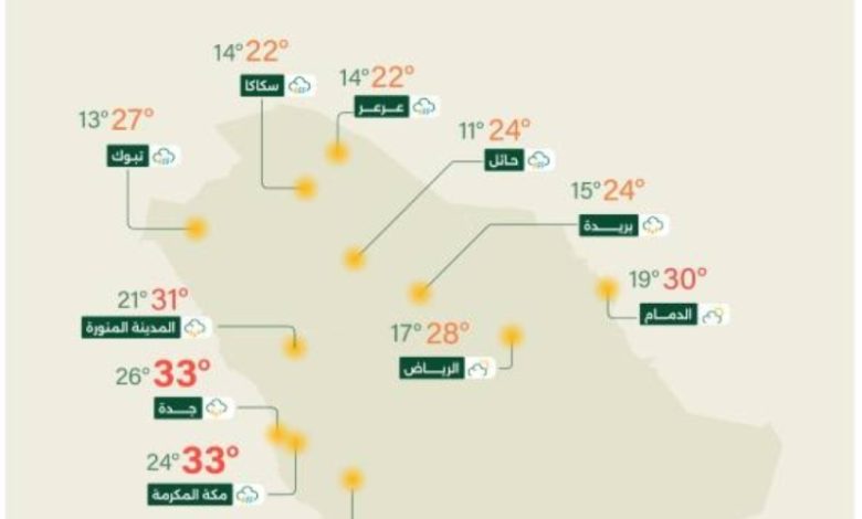 وتشير التوقعات إلى تغير في حركة الرياح على البحر الأحمر والخليج العربي، مع ارتفاع في ارتفاع الموج وتكوّن السحب الرعدية الممطرة.