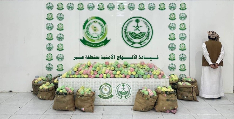 القبض على مواطن بعسير لترويجه (127) كيلو جرامًا من القات المخدرة من قبل الأفواج الأمنية