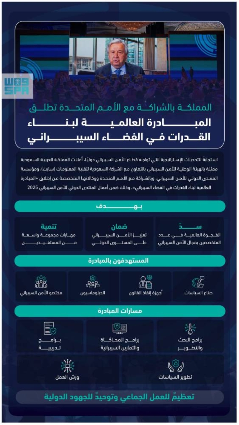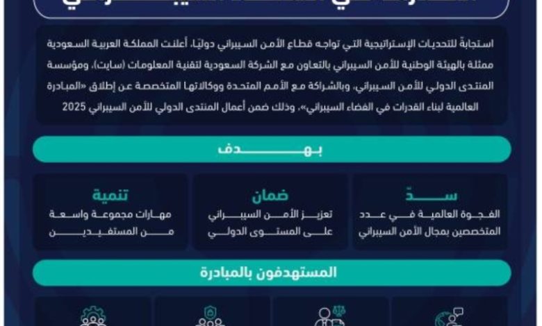 أعلنت المملكة العربية السعودية عن إطلاق مبادرة عالمية لبناء القدرات الدولية في الفضاء السيبراني، بالتعاون مع الهيئة الوطنية للأمن السيبراني والشركة السعودية لتقنية المعلومات (سايت) ومؤسسة المنتدى الدولي للأمن السيبراني، بالشراكة مع الأمم المتحدة. تم الإعلان عن هذه المبادرة خلال النسخة الخامسة من المنتدى الدولي للأمن السيبراني في العاصمة الرياض.