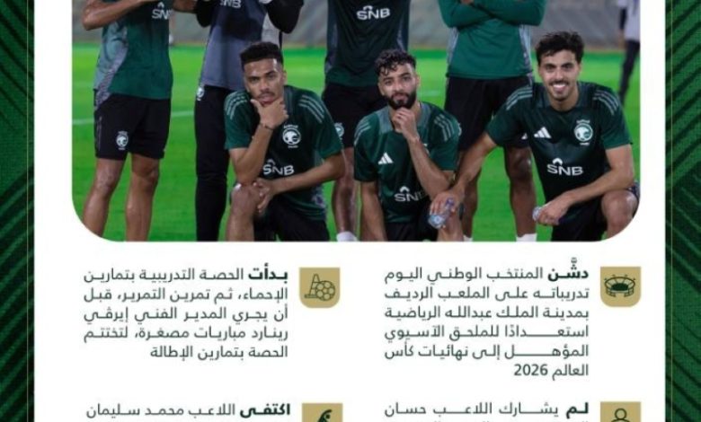 افتتح المنتخب الأول لكرة القدم معسكره الإعدادي في جدة، استعدادًا للمشاركة في الملحق الآسيوي المؤهل إلى نهائيات كأس العالم 2026. وجميع اللاعبين انضموا إلى المعسكر، بينما سينضم الثلاثي سعود عبدالحميد، ومروان الصحفي، ومهند آل سعد بعد انتهاء ارتباطاتهم مع أنديتهم.