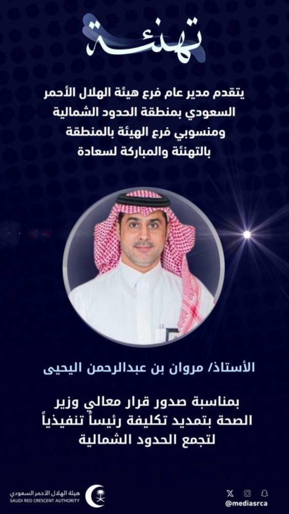 تمديد تكليف مروان بن عبدالرحمن اليحيى رئيساً تنفيذياً لتجمع الحدود الشمالية في خطوة تعكس الثقة والتقدير، قرر وزير الصحة تمديد