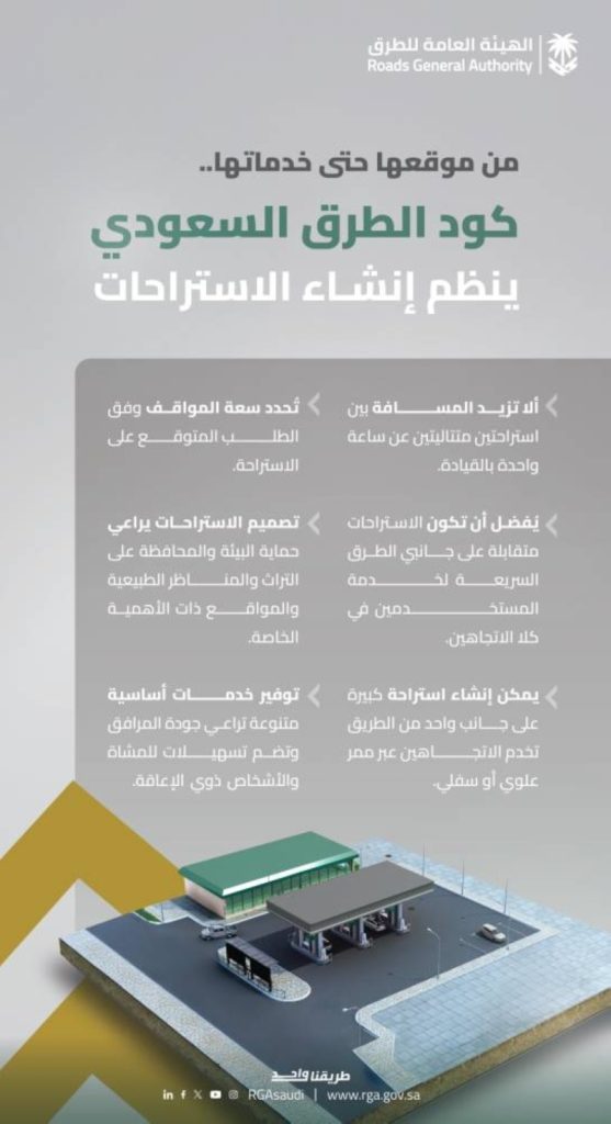 استراحات الطرق السريعة: الكود السعودي يحدد المعايير في خطوة تهدف إلى تعزيز راحة وسلامة مستخدمي الطرق السريعة، كشفت الهيئة العامة