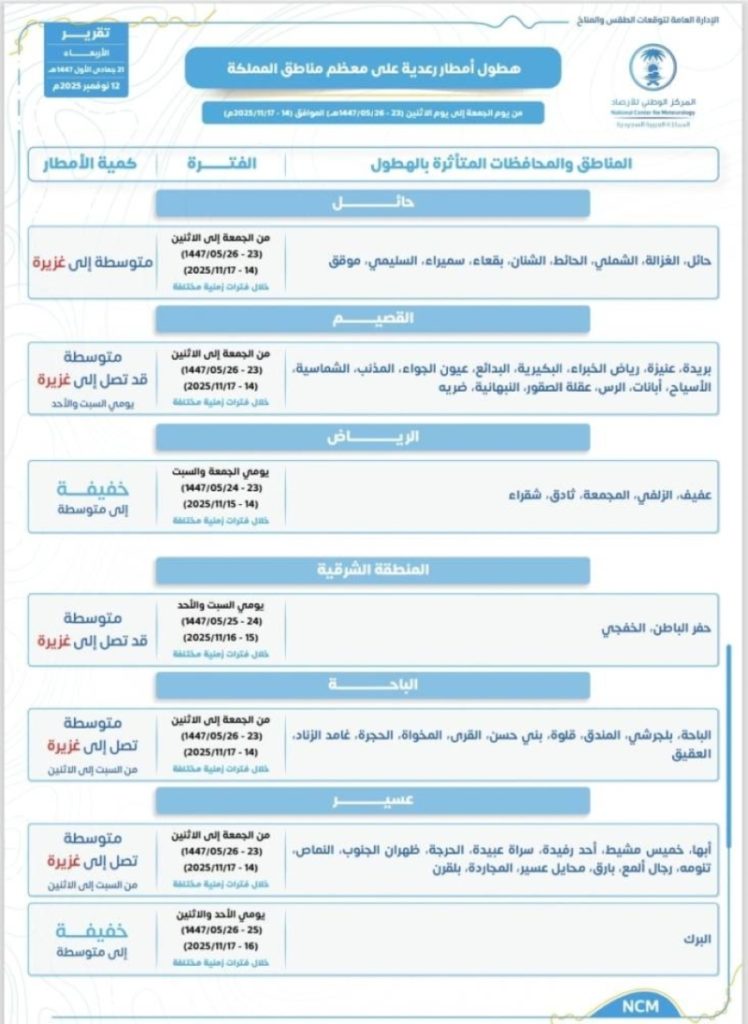 أمطار غزيرة تضرب منطقة الباحة باحثًا عن السلامة والحذر، نبه المركز الوطني للأرصاد اليوم إلى هطول أمطار متوسطة إلى غزيرة