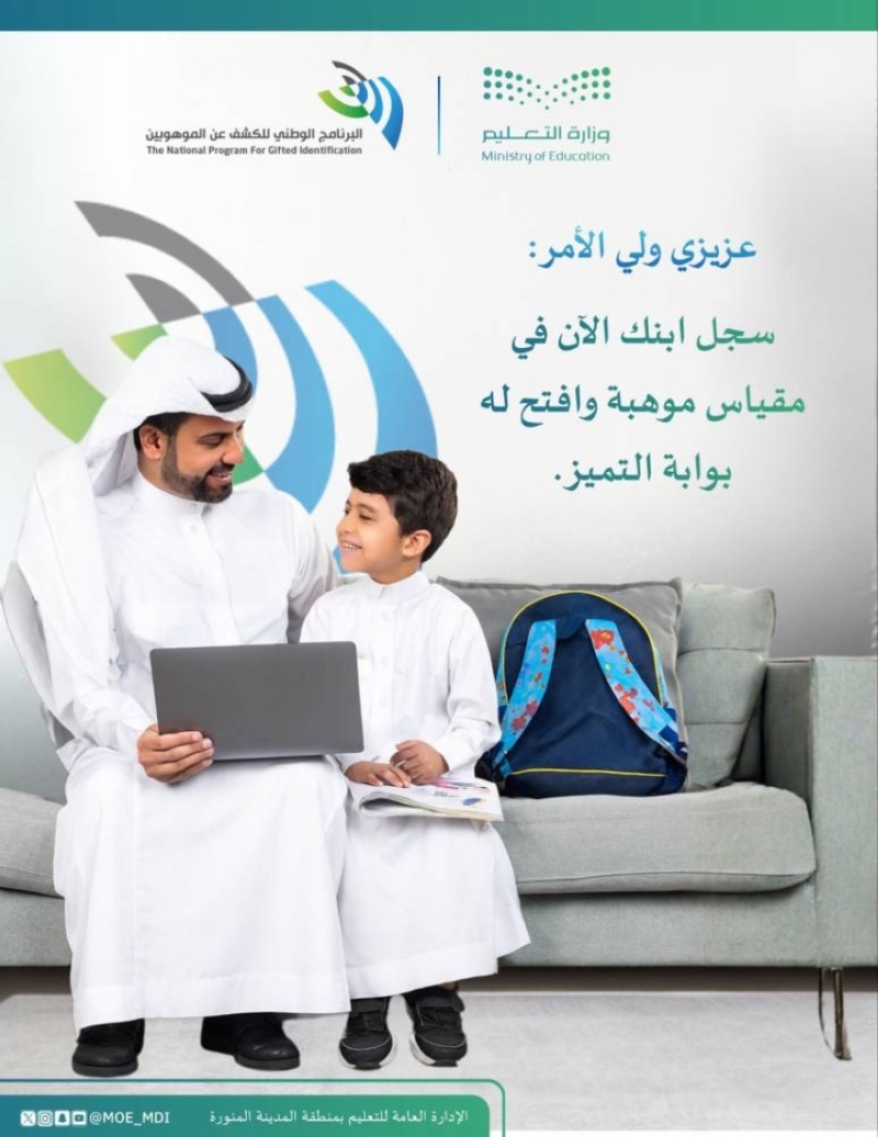 تدعو الإدارة العامة للتعليم بمنطقة المدينة المنورة الموهوبين للتسجيل في البرنامج الوطني للكشف عن الموهوبين "مقياس موهبة". ينظم هذا البرنامج بالشراكة مع وزارة التعليم، ويهدف إلى اكتشاف الطلبة المتميزين وتنمية قدراتهم في مختلف المجالات العلمية والإبداعية.