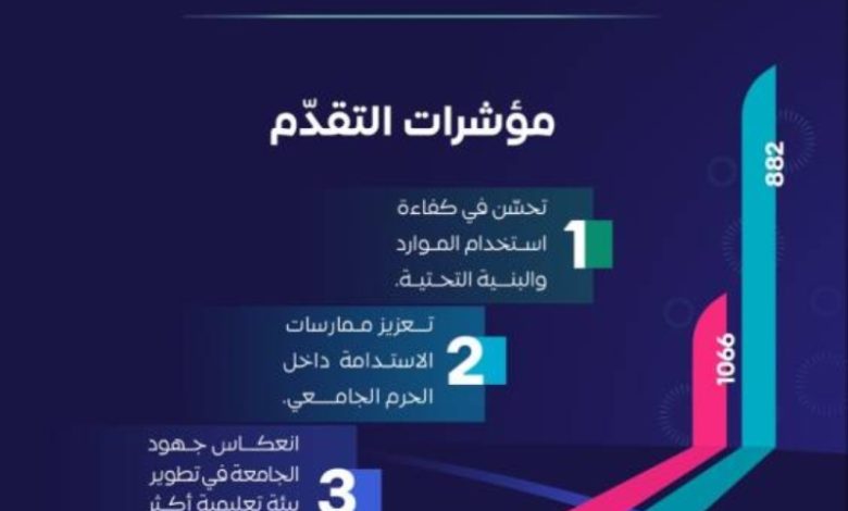 وفي تصريحات للجامعة، أكدت على أن هذا التقدم الكبير جاء نتيجة الجهود المستمرة لتحسين كفاءة استخدام الموارد الطبيعية، وتطوير البنية التحتية، وزيادة الوعي البيئي بين منسوبي الجامعة.