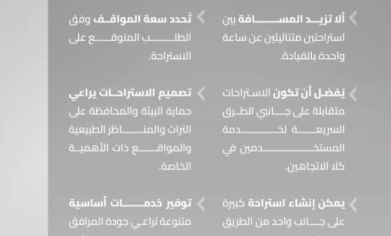 تنظيم كود الطرق السعودي لإنشاء الاستراحات يعزز راحة وسلامة مستخدمي الطرق