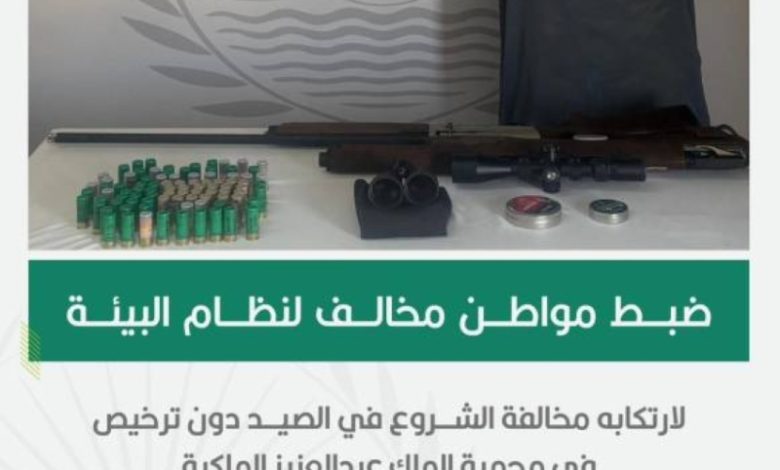 تم ضبط مواطن مخالف لنظام البيئة بحوزته أسلحة صيد غير مرخصة في محمية الملك عبدالعزيز