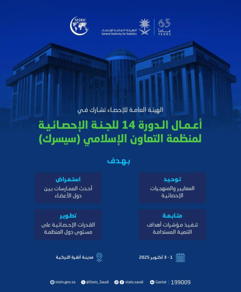 مشاركة رئيس الهيئة العامة للإحصاء في الدورة الـ14 للجنة الإحصائية لمنظمة التعاون الإسلامي