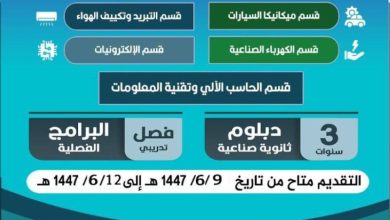 المعهد الصناعي الثانوي بالباحة يعلن عن فتح باب القبول للفصل التدريبي الثاني أعلن المعهد الصناعي الثانوي بالباحة عن فتح باب…