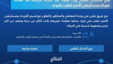 إعادة الحركة لمريضة بنجاح بعد استبدال مفصل الورك بواسطة: زهير الغزال – الجوف تاريخ النشر: 30 نوفمبر 2025 12:35 KSA…