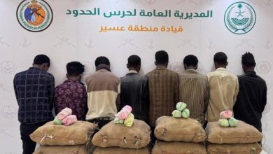 ضبط حرس الحدود بعسير (8) مهربين يحملون (120) كيلو من القات